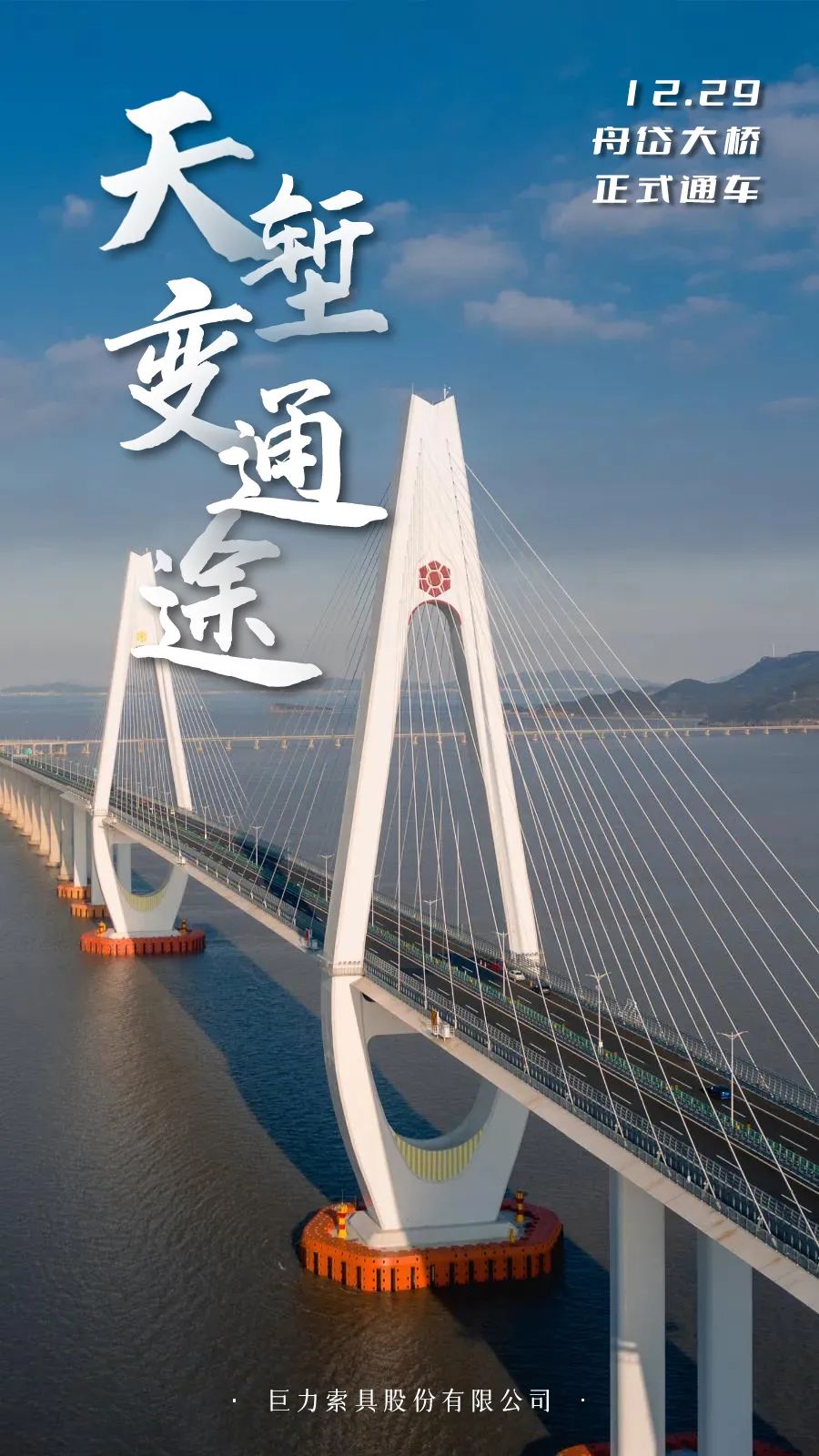 寧波舟山港主通道項目作為滬舟甬跨海大通道的重要組成部分,建成后與甬舟高速相連,使舟山連島工程總建設(shè)里程達到83公里,跨越8個島嶼,擁有10座大橋,除舟岱大橋,巨力索具還承接了南通航孔橋、富翅門大橋、金塘大橋的斜拉索安裝工作。