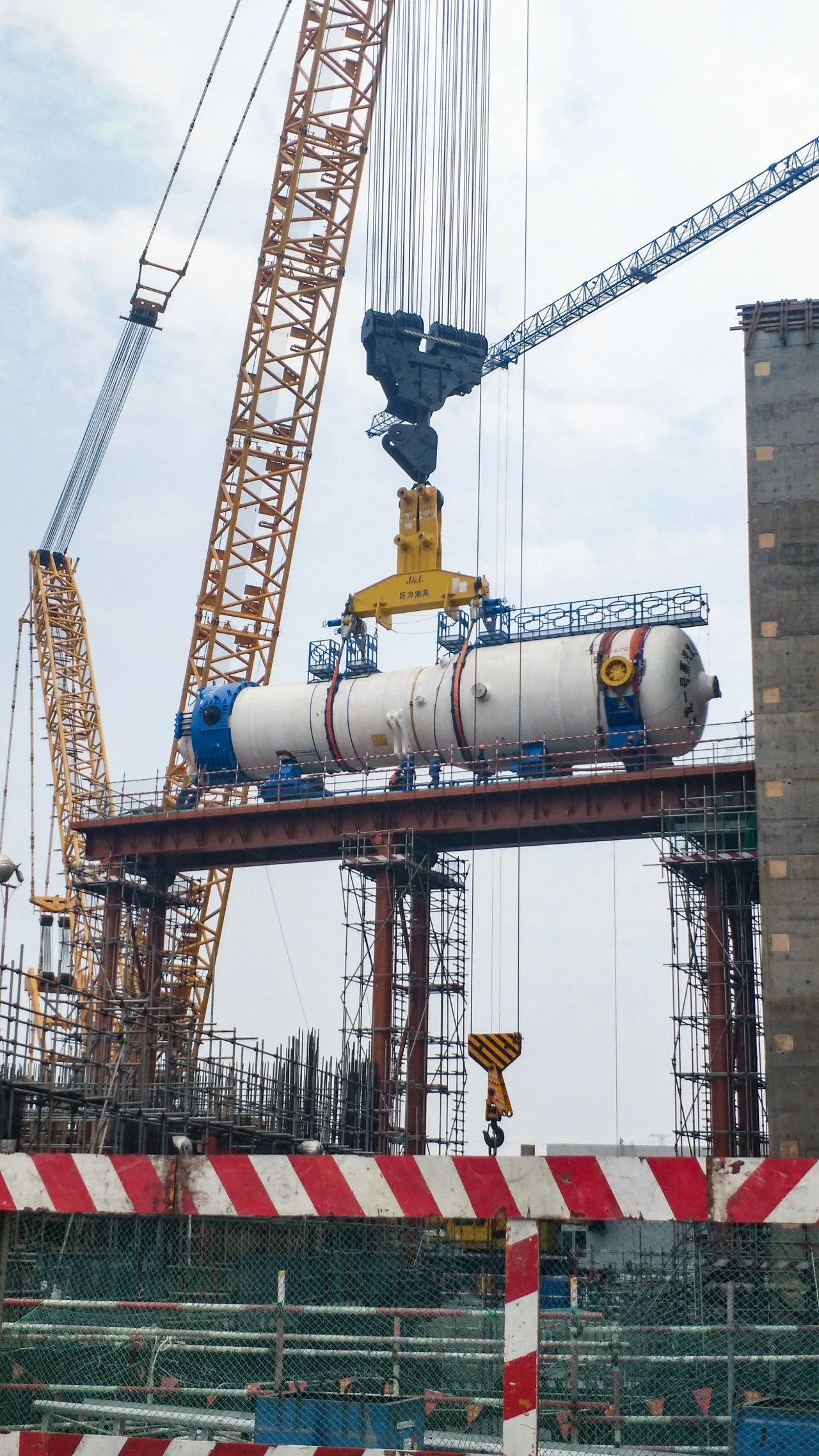 2016年5月,我國自主研發(fā)的世界首座具有第四代核電特征的高溫氣冷堆核電站首臺(tái)金屬堆內(nèi)構(gòu)件堆芯殼順利吊裝就位。巨力索具為該工程量身定做的大型十字吊梁(額載400噸),配套吊裝帶、鋼絲繩索具以及高強(qiáng)度鍛造索具連接件產(chǎn)品,先進(jìn)的吊裝方案和高質(zhì)量的吊索具產(chǎn)品,為重要構(gòu)件吊裝成功提供了堅(jiān)實(shí)的保障。