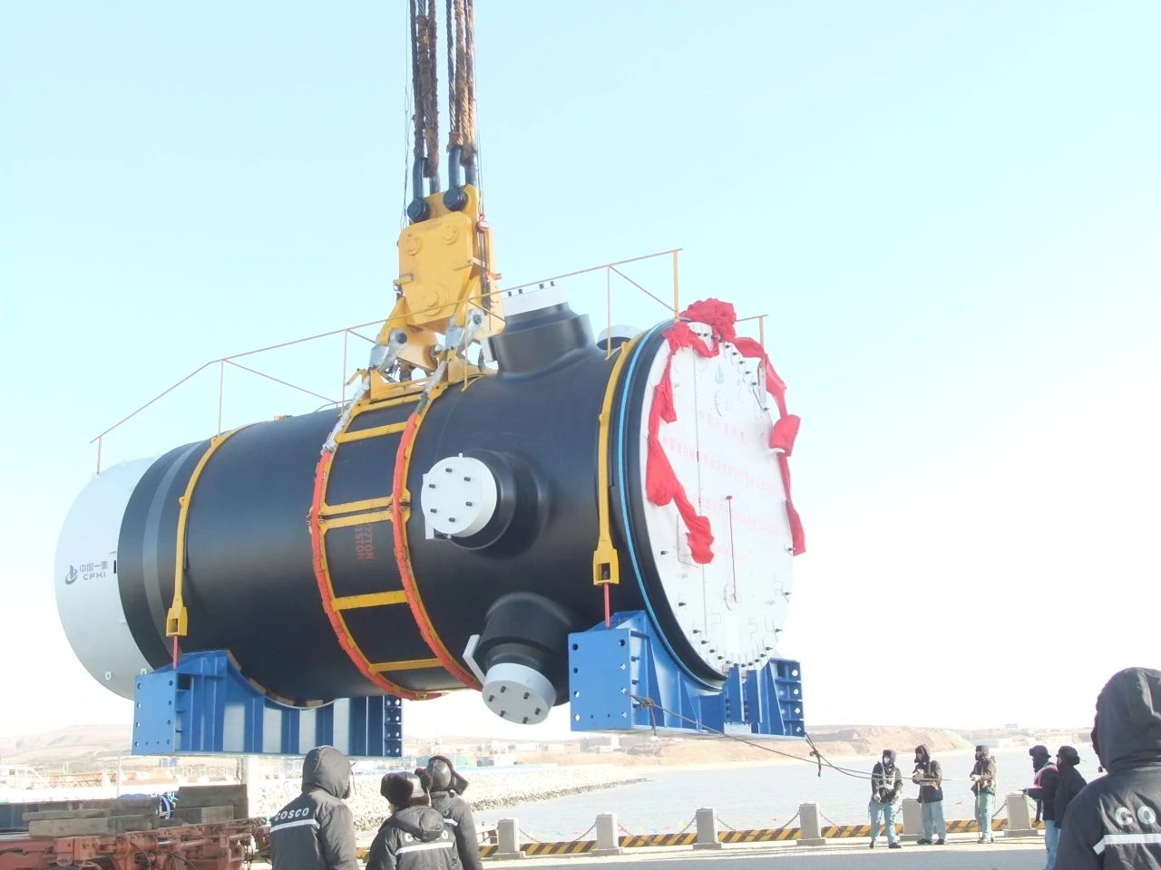 2024年1月,徐大堡核電1號(hào)機(jī)組CV底封頭開始吊裝,CV底封頭整體呈半橢球形殼體結(jié)構(gòu),具有重量大、體積大、就位精度高等特點(diǎn)。巨力索具所提供的轉(zhuǎn)接頭、分配器、吊索組成成套吊具解決受力問題,并全程配合吊裝過程,確保吊裝過程穩(wěn)步進(jìn)行。