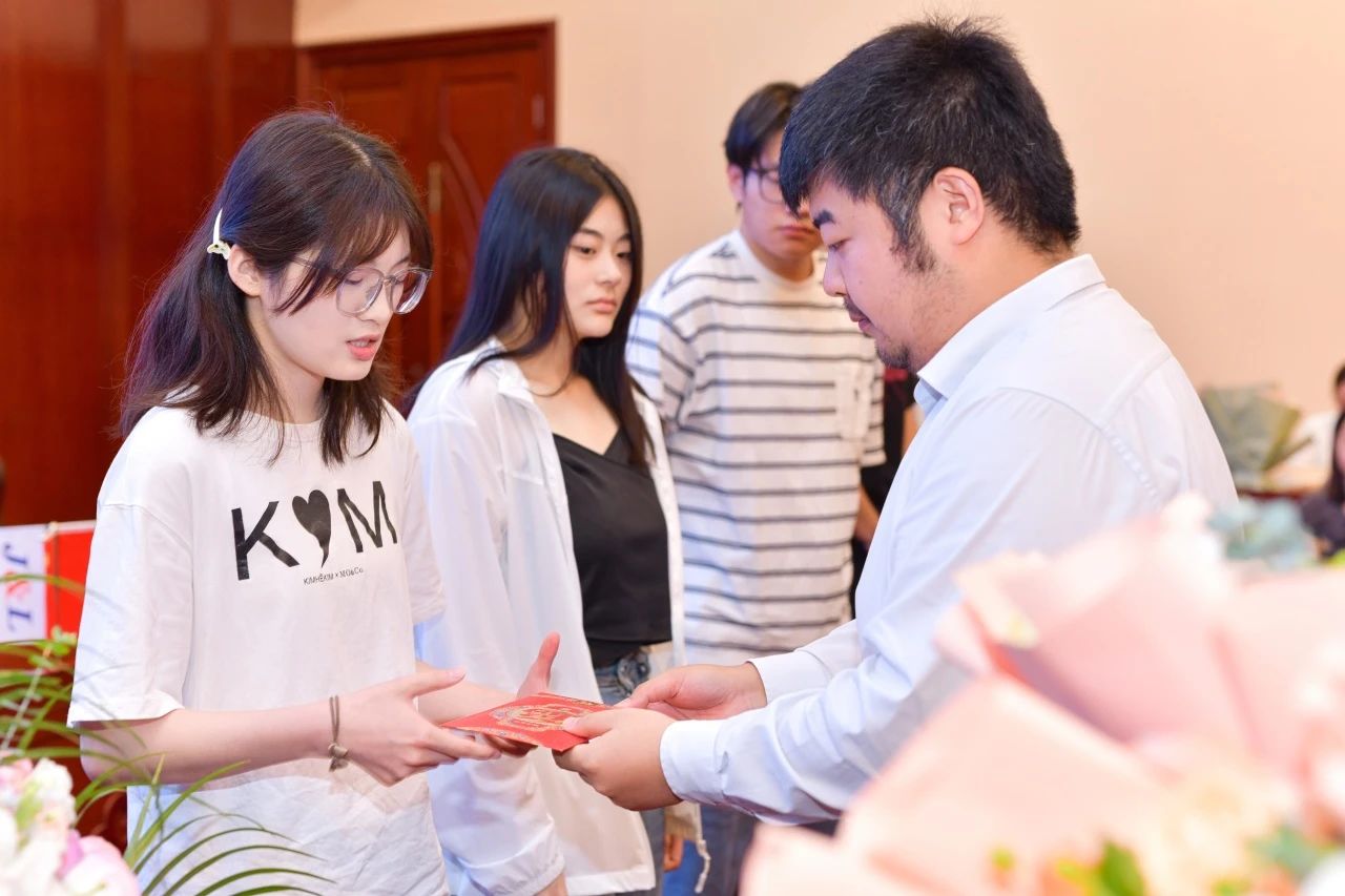 分享會(huì)上,楊超向含辛茹苦供子女求學(xué)的職工及家屬表示崇高的敬意,向金榜題名的職工子女表示熱烈的祝賀,他精心的為每位到場(chǎng)的考生準(zhǔn)備了兩份禮物:一本書籍和一份助學(xué)金。表達(dá)他對(duì)考生的美好祝愿。