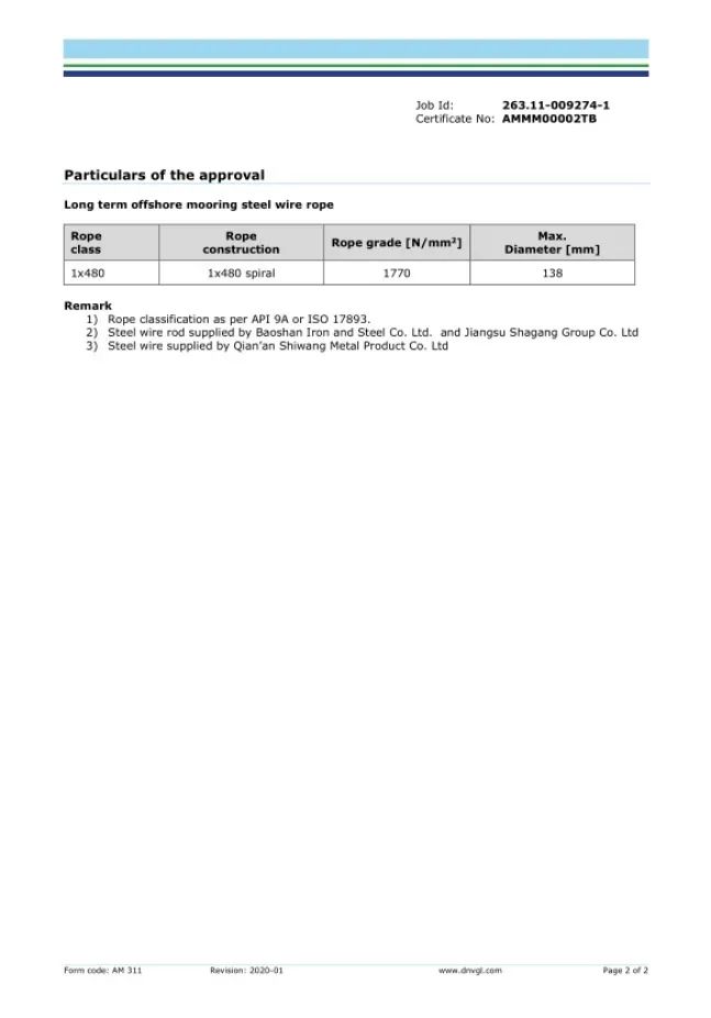 2020年11月,巨力索具取得了永久系泊用單股涂塑鋼絲繩的DNV·GL工廠認(rèn)可證書(shū),成為國(guó)內(nèi)首家通過(guò)該類(lèi)鋼絲繩DNV·GL工廠認(rèn)可的廠家。