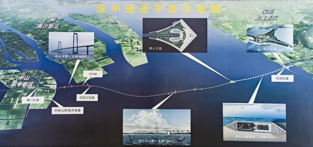 深中通道是集“橋、島、隧、水下互通”為一體的世界級跨海集群工程,全長24公里。其中,橋梁工程長約17.2公里,其關(guān)鍵控制性工程為主跨1666米的伶仃洋大橋與主跨580米的中山大橋。