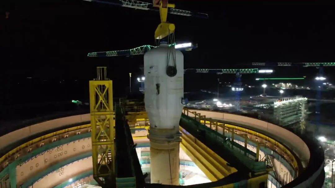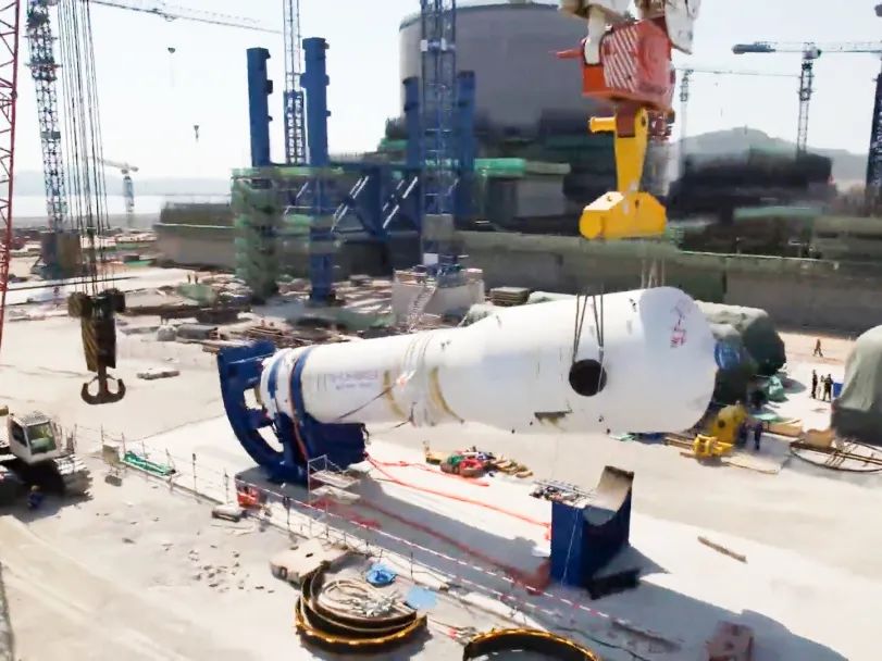 9月26日13時48分,隨著現(xiàn)場總指揮一聲令下,3200噸履帶式大吊車緩緩啟動,漳州核電1號機(jī)組首臺蒸汽發(fā)生器(第二環(huán)路)經(jīng)過翻轉(zhuǎn)、提升、變幅等一系列既定工序,于9月27日1時06分順利吊裝就位。整個吊裝過程中所用的吊梁、配套索具、提吊耳軸均由巨力索具提供,為后續(xù)主設(shè)備吊裝奠定了堅實基礎(chǔ),漳州核電項目“主設(shè)備先行引入法”施工贏得“開門紅”。