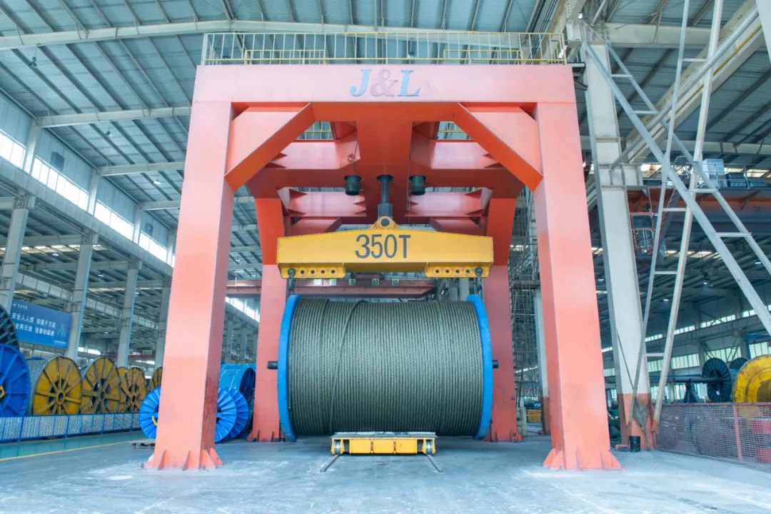 巨力索具為“秦航工2300”號提供起升、變幅、拋錨三大系統(tǒng)在內(nèi)的全船鋼絲繩配套,包括本次超千噸級吊裝所用全套索具系列產(chǎn)品。其中為滿足“秦航工2300”號亞洲第一吊高的施工需求,船舶工程師設(shè)計了超高的2300噸吊機主臂架,使主變幅鋼絲繩長度必須滿足主臂架設(shè)計要求,巨力索具項目團隊根據(jù)設(shè)計方案結(jié)合生產(chǎn)工藝進行改造提升,最終實現(xiàn)單根鋼絲繩長度超過10730米,凈重達215噸成功交付使用,該鋼絲繩成功投入使用標(biāo)志著我國鋼絲繩產(chǎn)業(yè)又向前邁出一步,既彰顯了巨力索具制造實力,也為我國在超長超重鋼絲繩領(lǐng)域發(fā)展畫上濃墨重彩的一筆。