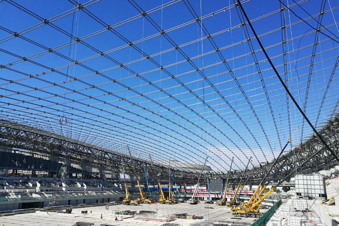 國家速滑館是2022年冬奧會北京市內(nèi)唯一新建比賽場館,為世界最大跨度的正交雙向索網(wǎng)屋頂?shù)捏w育館。索網(wǎng)結(jié)構(gòu)更是符合綠色辦奧的要求:一是其用鋼量約為傳統(tǒng)屋頂?shù)?/4;二是工廠定制、現(xiàn)場裝配、施工簡便、污染小,這種新型的屋面體系是速滑館項目的一大科技亮點。