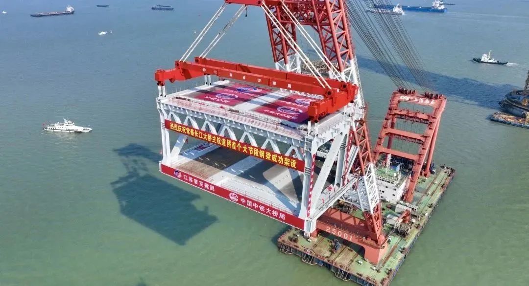 常泰長江大橋是世界上首座集高速公路、城際鐵路、一級公路為一體的過江通道,其主航道為主跨1176米的斜拉橋,跨度位居世界首位,具備“四個國際首創(chuàng)”和 “六個橋梁之最”。建成后對促進長三角區(qū)域更高質量一體化發(fā)展,加快揚子江城市群建設具有重要意義。