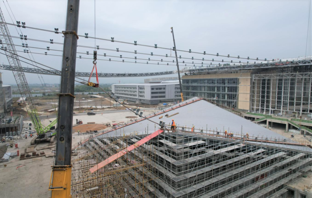 近期,由巨力索具參建的杭州中法航空大學(xué)項目迎來重要節(jié)點,位于50米半空中的公共中心組團大屋面鋼結(jié)構(gòu)拉索全部完成,由此,長395米、寬160米的巨型“機翼”初具雛形,也為大學(xué)整體工程在今年二季度竣工奠定了扎實基礎(chǔ)。