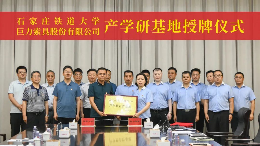 2023年7月4日,石家莊鐵道大學土木工程學院韓東海書記一行10人到訪巨力索具,雙方就產(chǎn)學研合作和黨建工作進行交流座談,舉行了戰(zhàn)略框架協(xié)議簽字儀式暨石家莊鐵道大學產(chǎn)學研基地授牌儀式。巨力索具常務副總裁李彥英、集團黨委副書記李天明、副總裁亢永剛接待并出席儀式。